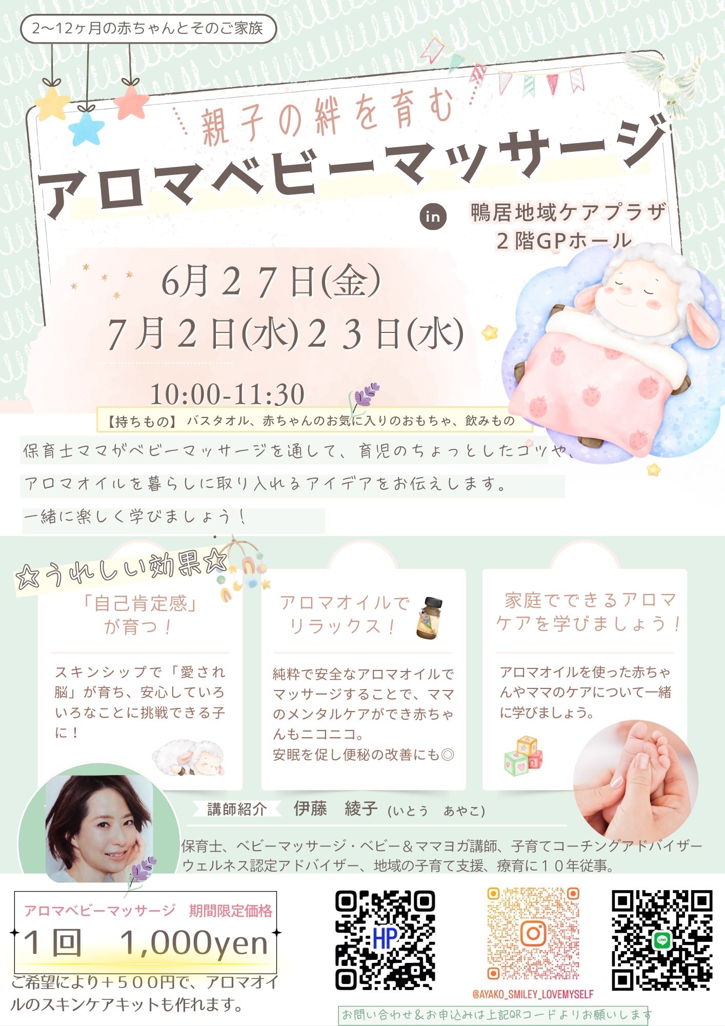 アロマベビーマッサージ教室を開催します。